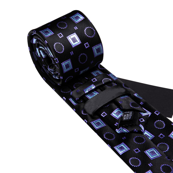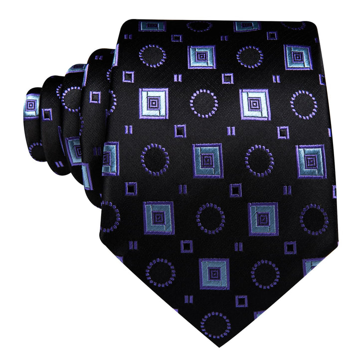 fashion design black purple blue geometric novelty silk mens purple ties pocket square cufflinks set