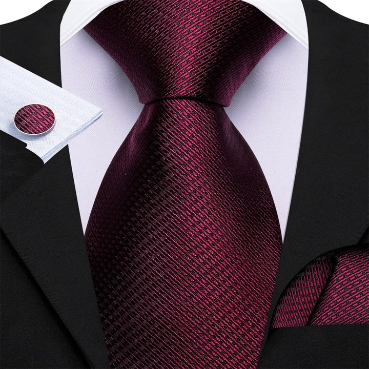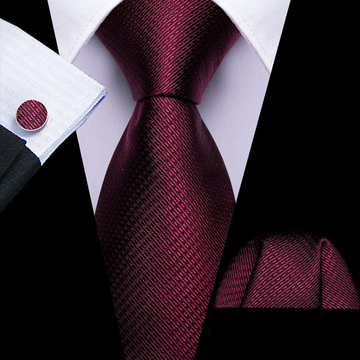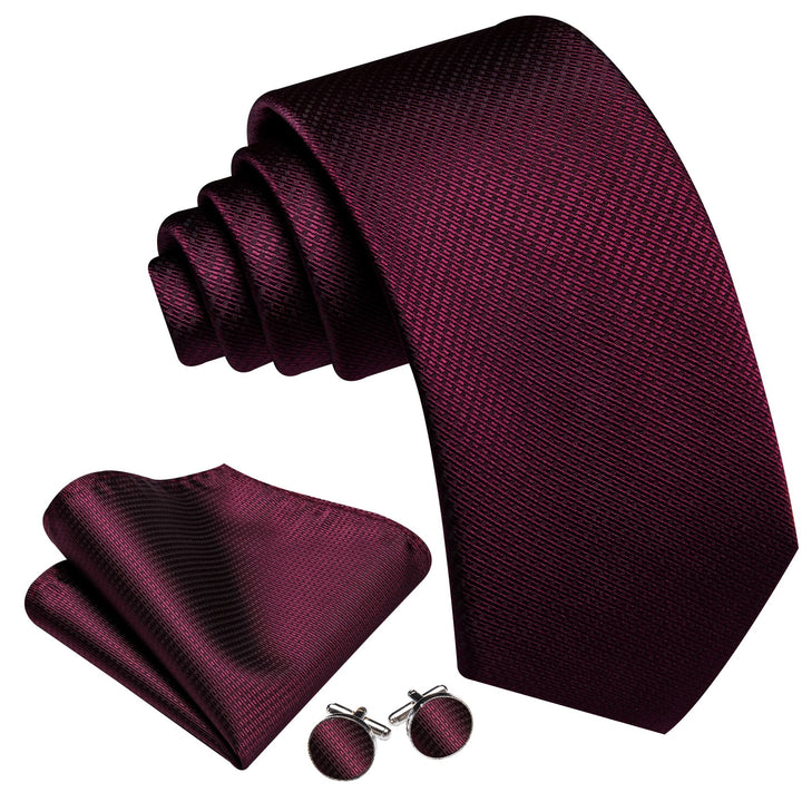 hot sale summer mens wedding solid Burgundy red neck tie handkerchief cufflinks set