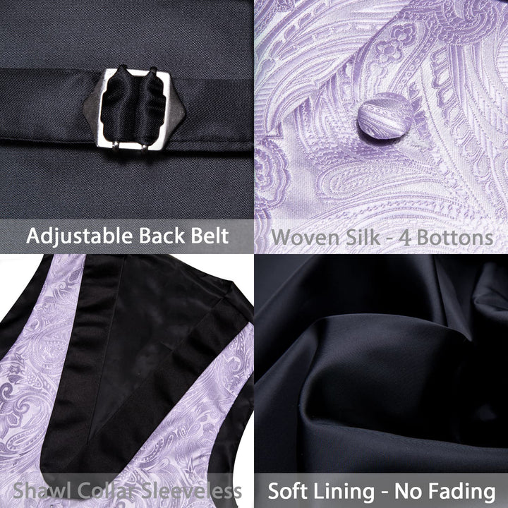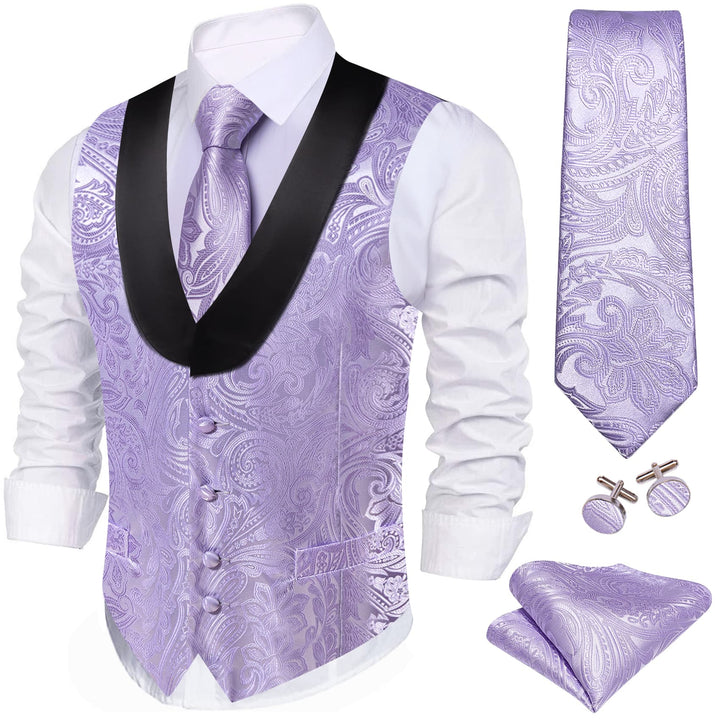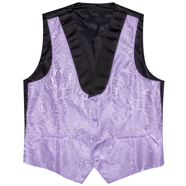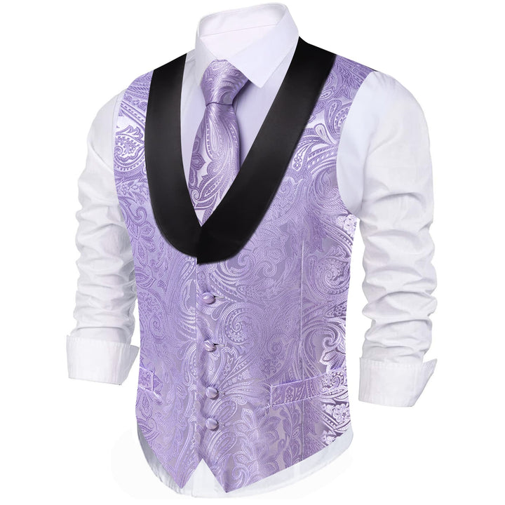 Ties2you Tuxedo Vest Light Purple Paisley Black Shawl Collar Silk Dress Vest for Men