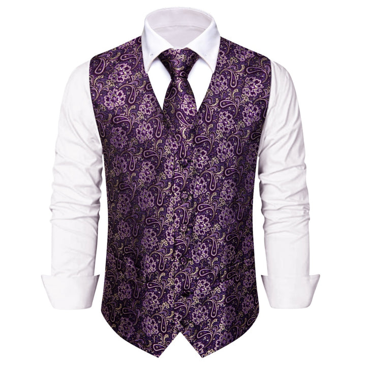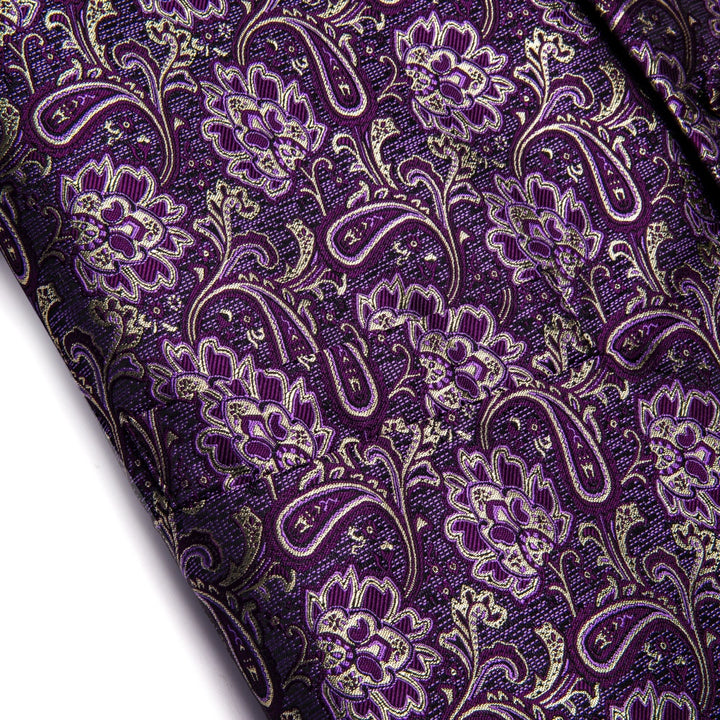 Ties2you V-Neck Waistcoat Purple Beige Paisley Men's Vest Necktie Set