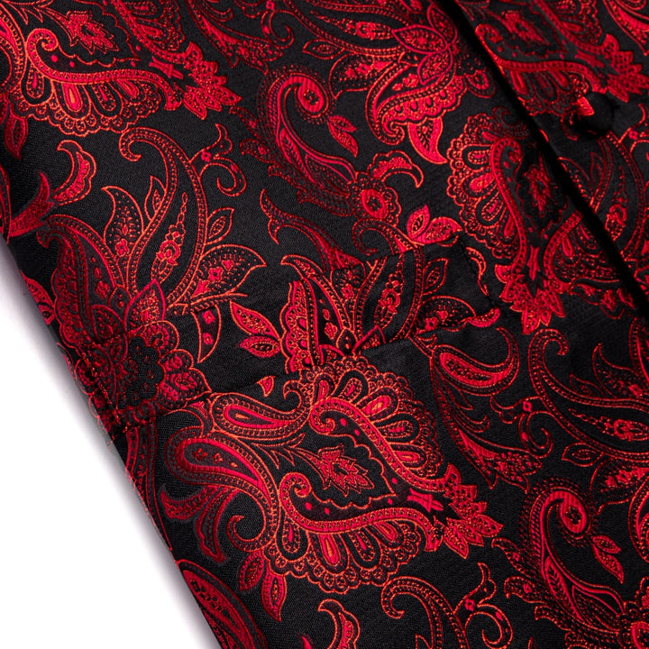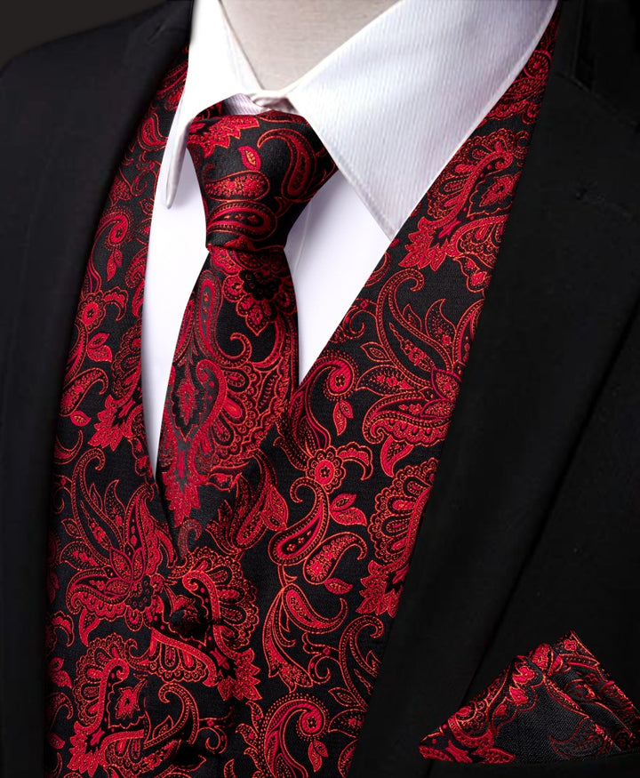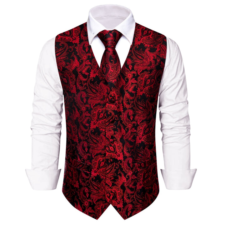 Ties2you V-Neck Waistcoat Red Jacquard Paisley Men's Vest Necktie Set