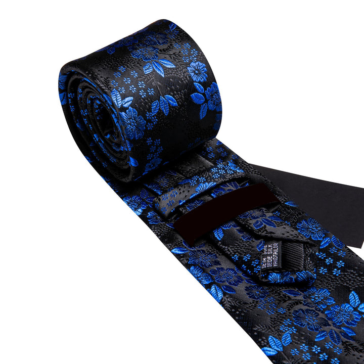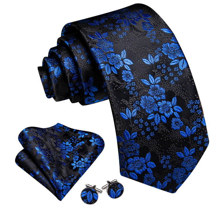 Ties2you Wedding Ties Black Navy Blue Floral Silk Men's Work Dress Tie Hanky Cufflinks Set
