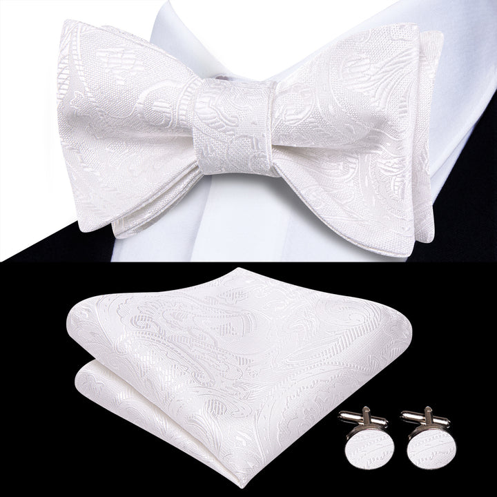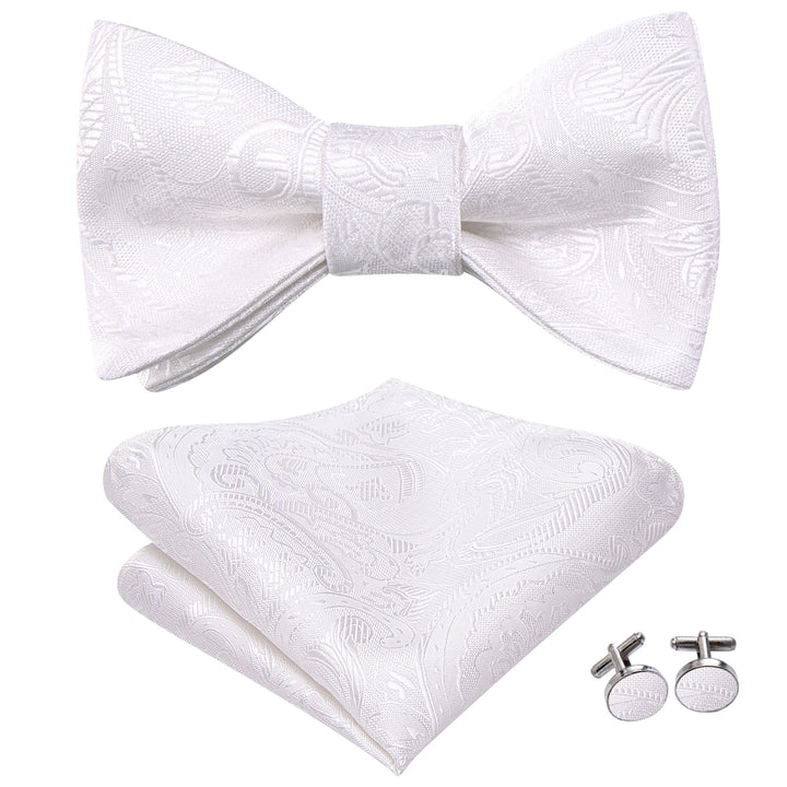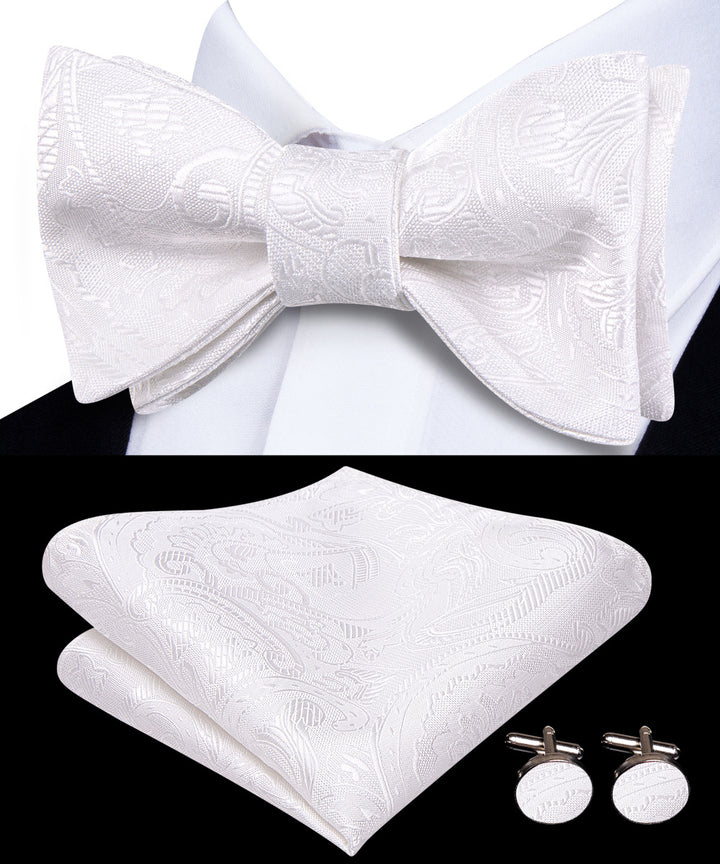 Ties2you White Floral Bow Ties Self-tie Tuxedo Bowtie Pocket Square Cufflinks Set