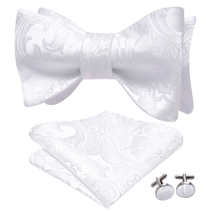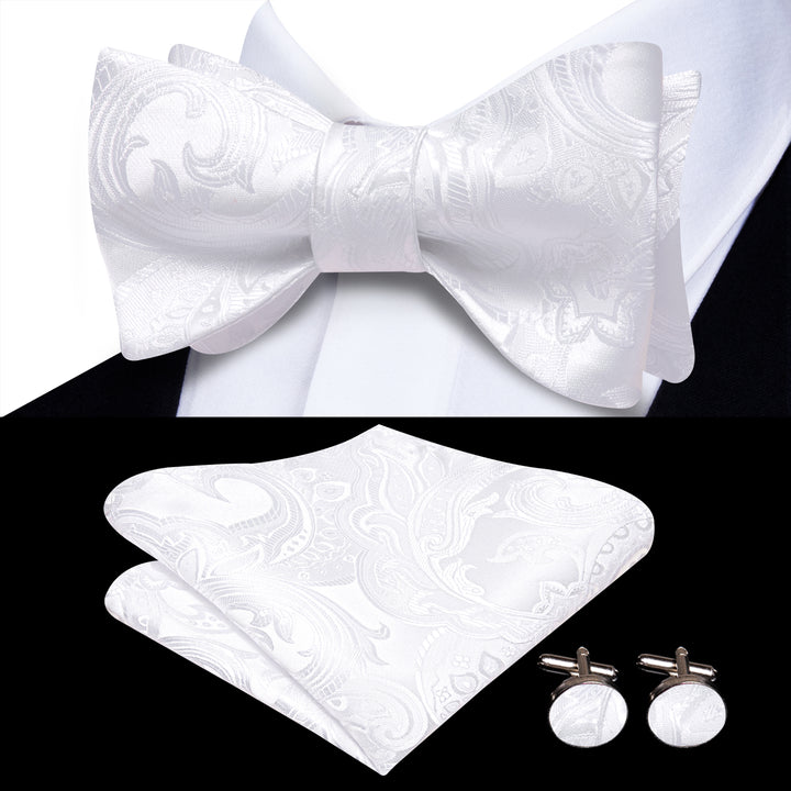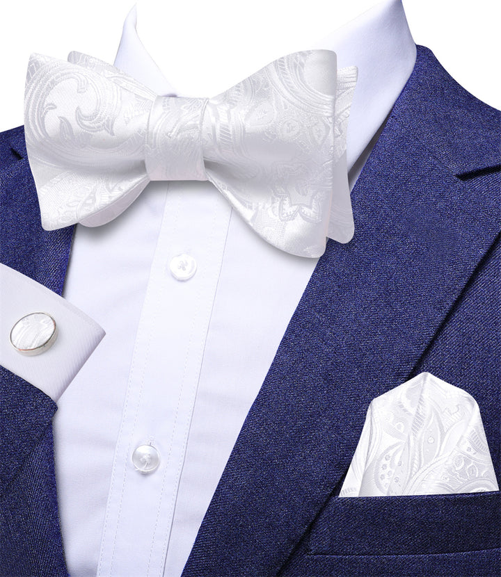 Ties2you White Floral Bowtie Self-tie Wedding Tuxedo Bow Tie Pocket Square Cufflinks Set