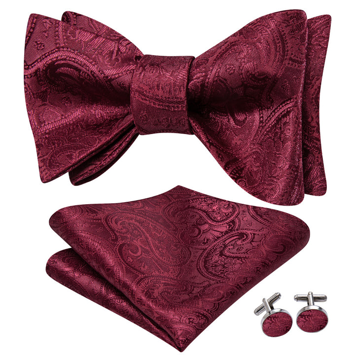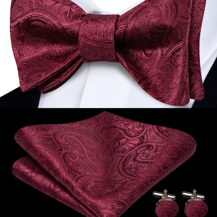 Ties2you Wine Burgundy Floral Tuxedo Bowtie Self-tie Bow Tie Handkerchief Cufflinks Set