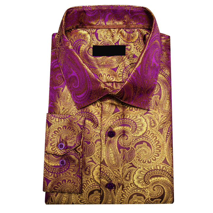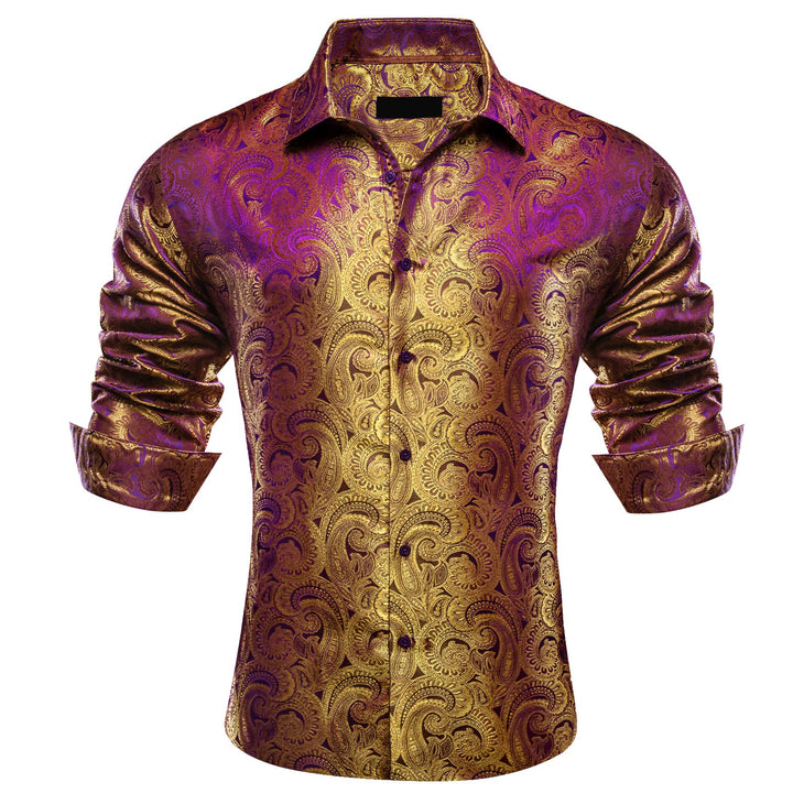 fashion paisley silk mens purple brown shirt Long Sleeve button up shirt for business suit