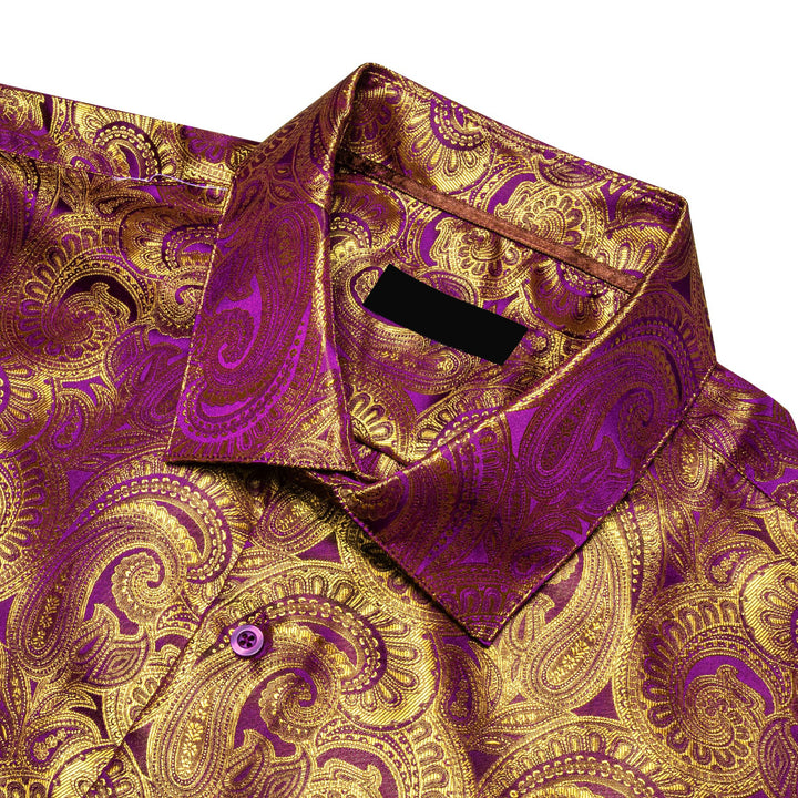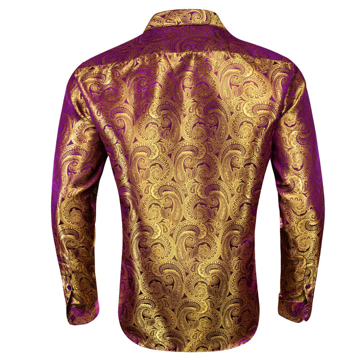 wedding shirt design silk paisley brown purple shirts for men