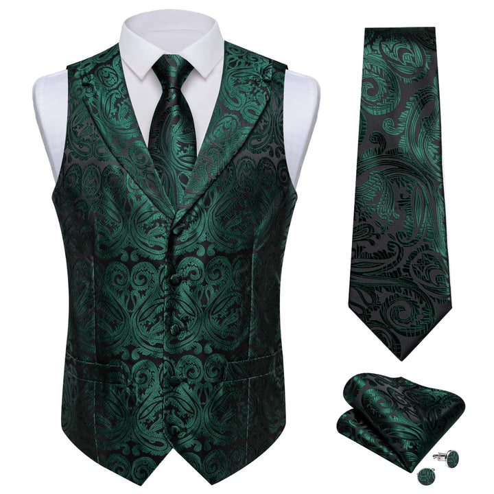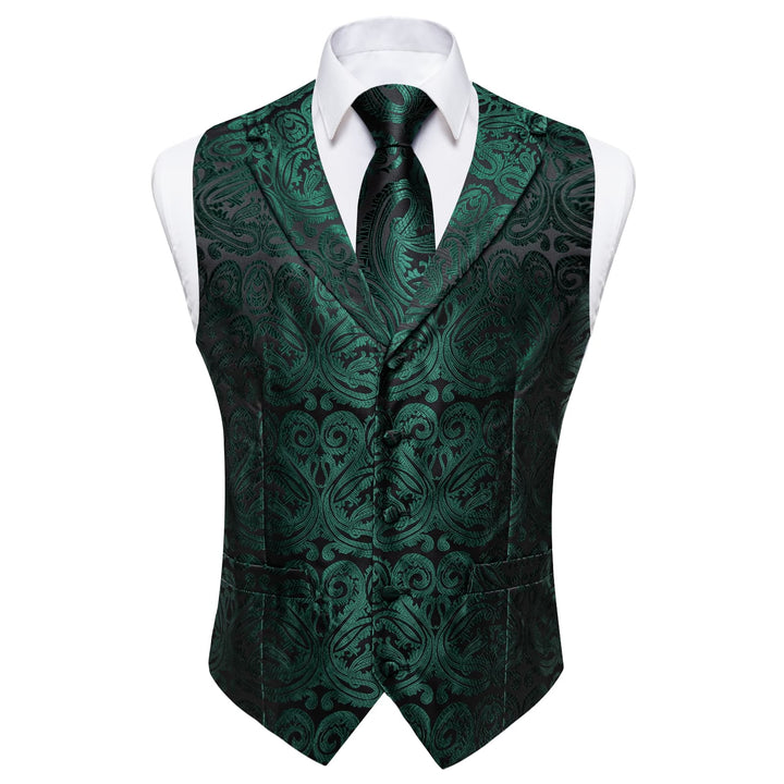 Ties2you Work Vest Phthalo Green Paisley Notched Collar Silk Waistcoat Tie Set for Men