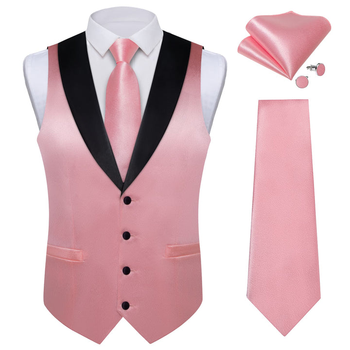 Ties2you Blush Pink Tuxedo Waistcoat 4PCS Wedding Suit Vest Tie Hanky Cufflinks Set
