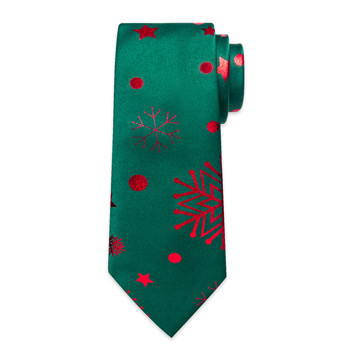 Ties2you Xmas Necktie Hunter Green Snowflake Tie Handkerchief Cufflinks Set