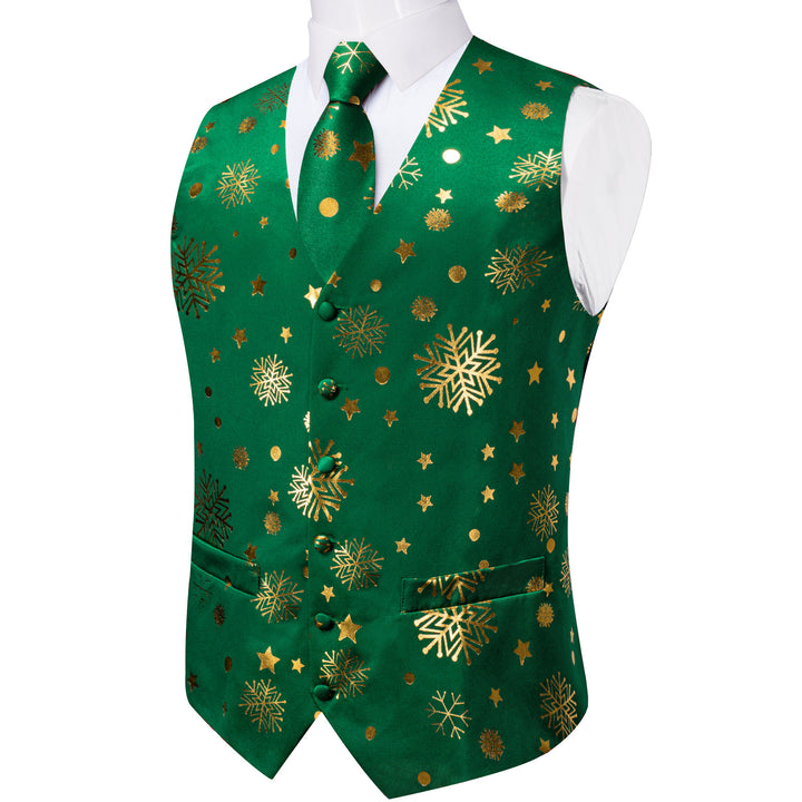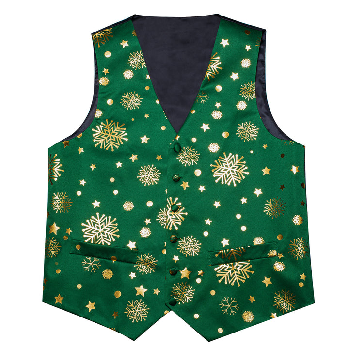 Ties2you Xmas Vest Mens Green Snowflake V-Neck Dress Waistcoat Necktie Pocket Square Cufflinks Set