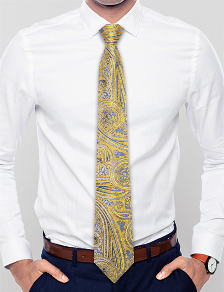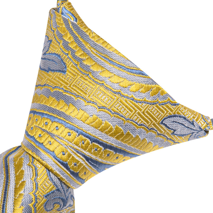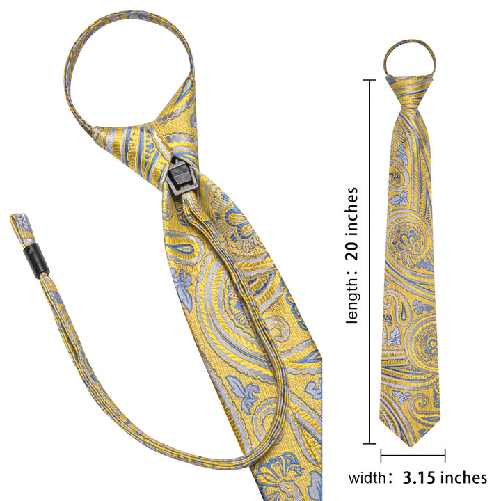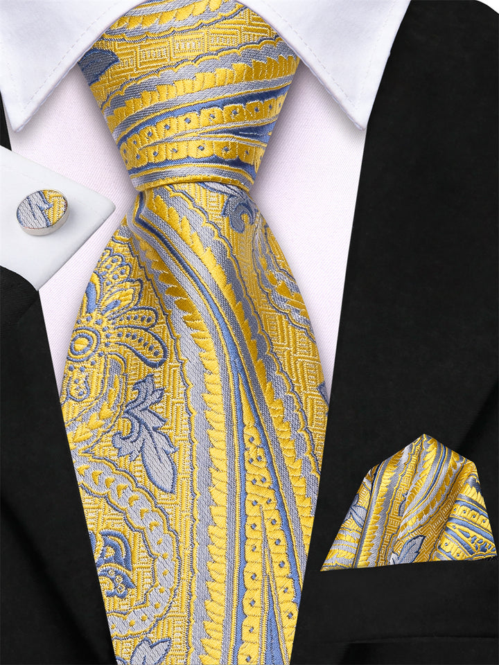 Ties2you Yellow Blue Floral Lazy Men's Easy-pull Silk Tie Pocket Square Cufflinks Set