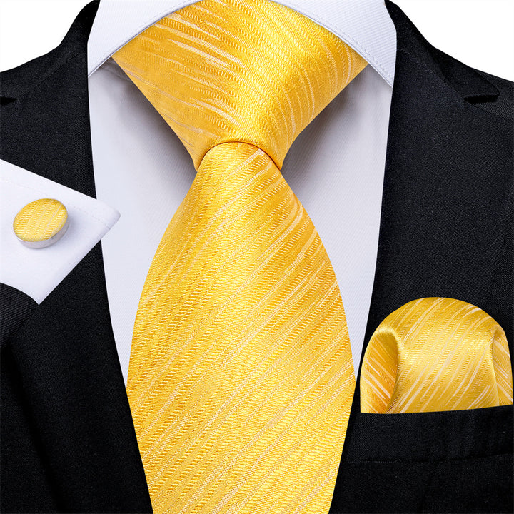 Ties2you Yellow Fine Striped Men's Tie Hanky Cufflinks Set