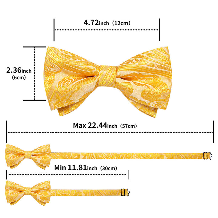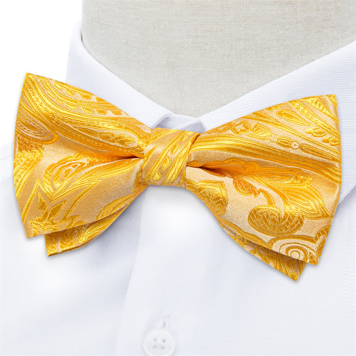 Ties2you Yellow Paisley Pre-tied Bow Tie Poket Square Cufflinks Set For Dress