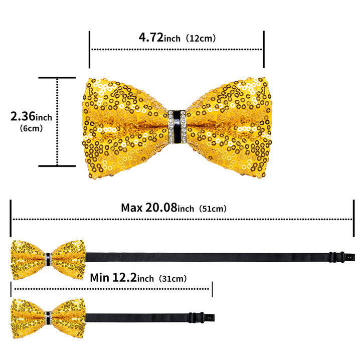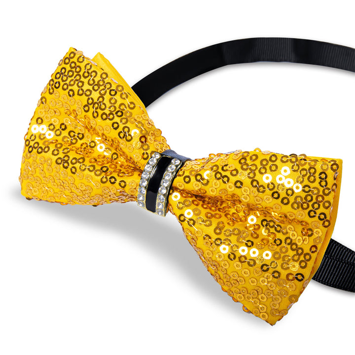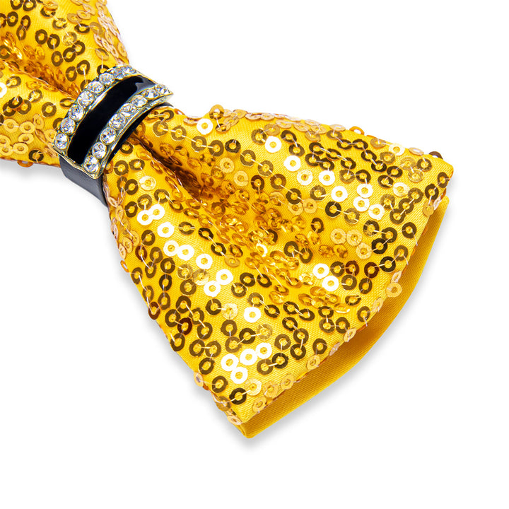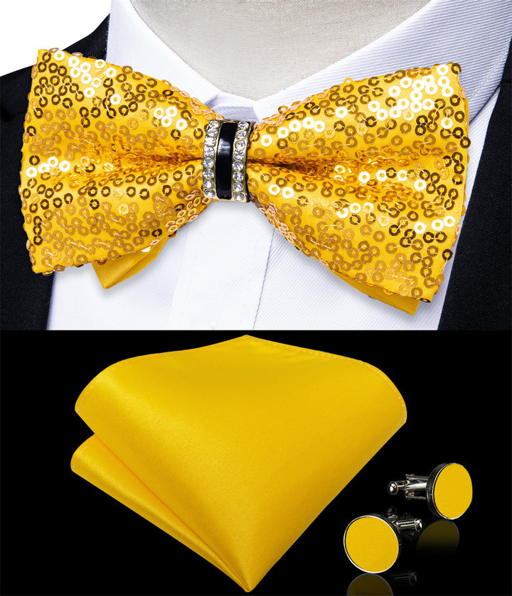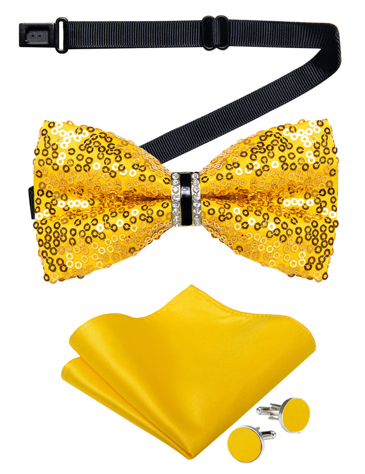Ties2you Yellow Sequins Novelty Pre-tied Bowtie Pocket Square Cufflinks Set
