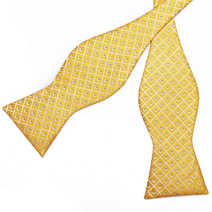 Ties2you Polka Dots Bowtie Yellow Self-tie Bow Tie Pocket Square Cufflinks Set for Men