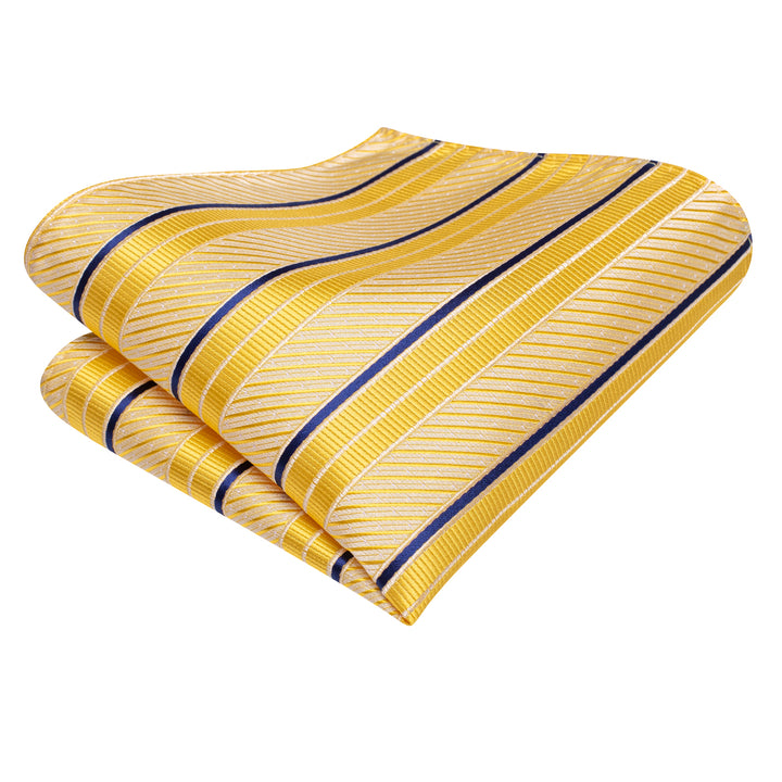 Yellow Blue Striped Men's Tie Handkerchief Cufflinks Set
