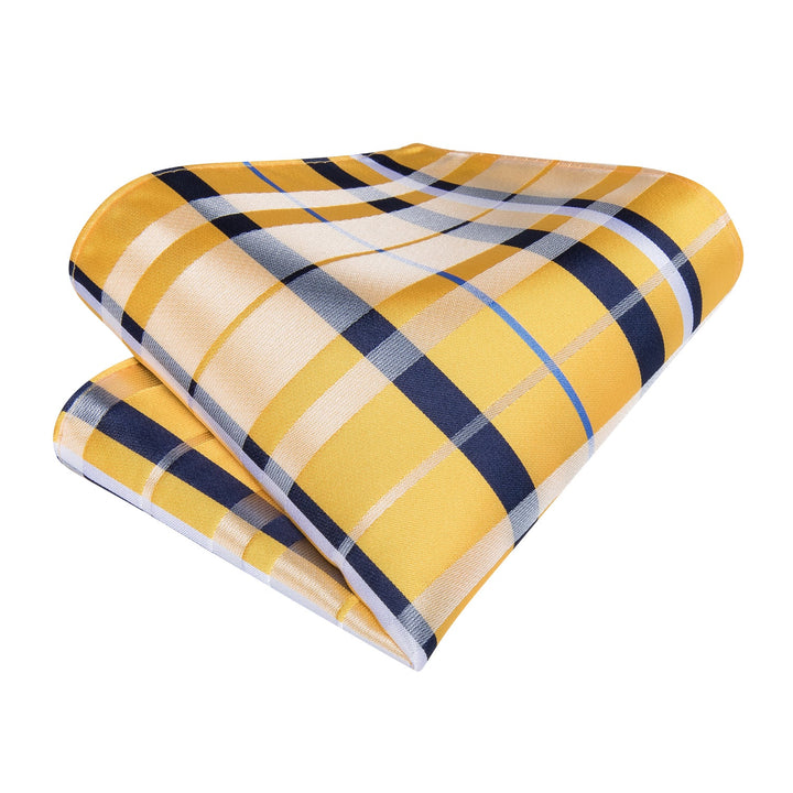 New Yellow Blue Striped Silk Cravat Woven Ascot Tie Pocket Square Handkerchief Suit Set (4602631028817)