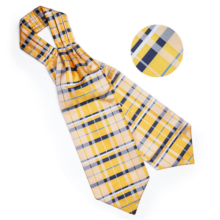 Golden Blue Plaid Silk Ascot Cravat knit ties for sale with floral tie Lapel Pin