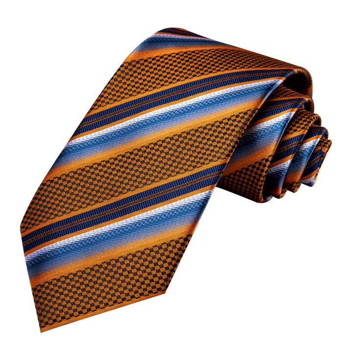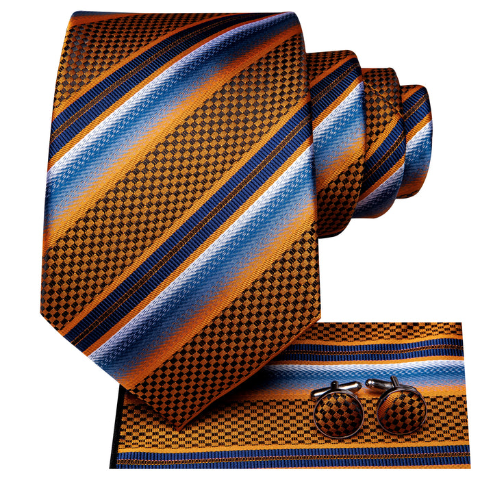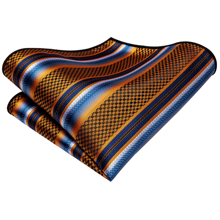Yellow Blue Striped Silk Necktie Pocket Square Cufflinks Set