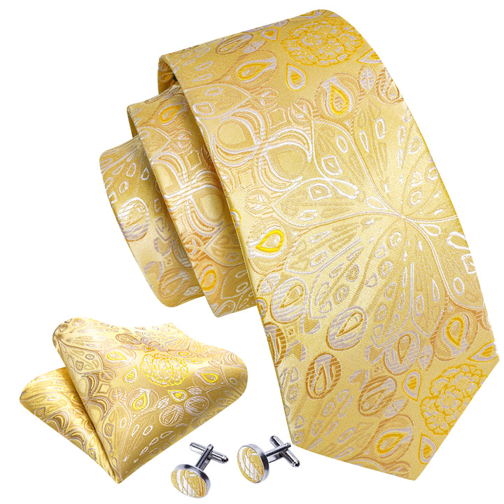 Yellow Floral Silk Men's Necktie Pocket Square Cufflinks Set