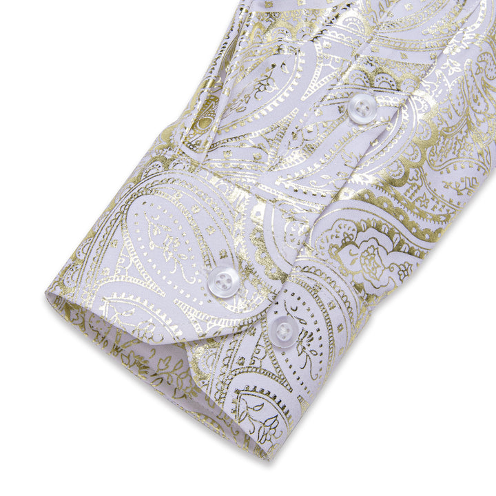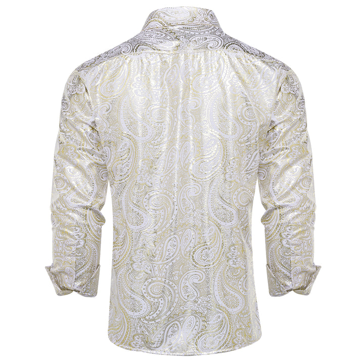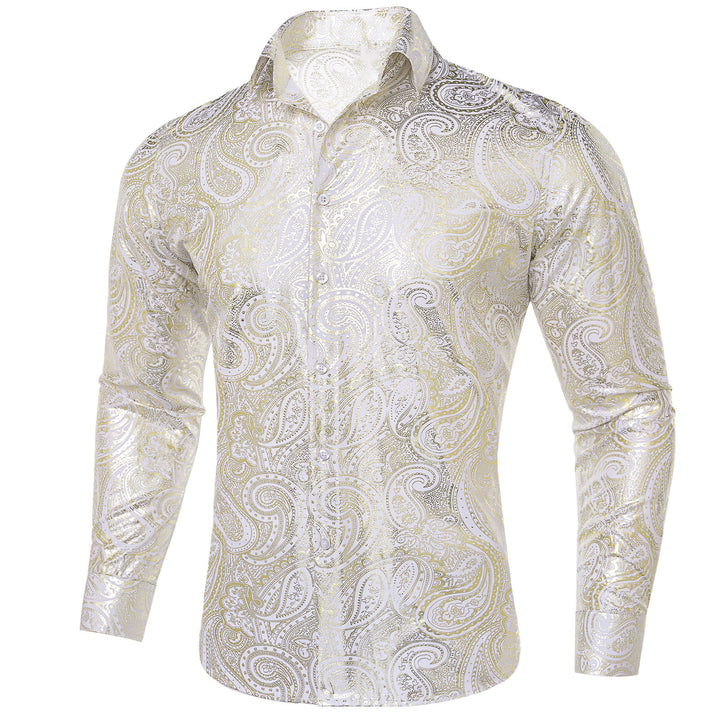 Yellow White Paisley Flower Hot Stamping Men's Long Sleeve Shirt