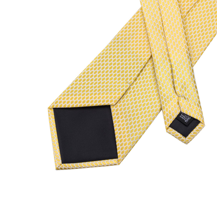 Yellow-White Plaid Tie Pocket Square Cufflinks Set